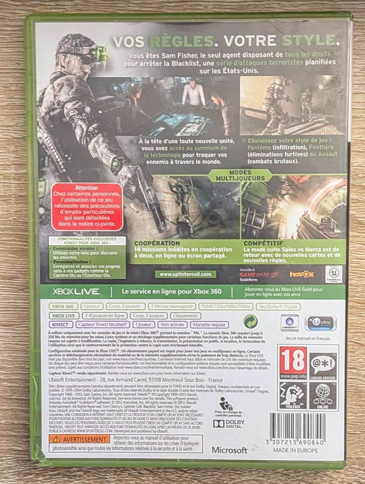 L2 - Tom Clancy's Splinter Cell - Blacklist Xbox 360 : 3307215690840 - ARTICLE D'OCCASION EN TRES BON ETAT GÉNÉRAL - BOITIER ORIGINAL - JEUX ET COVER EN FRANCAIS - LIVRAISON ULTRA RAPIDE EN COLIS SUIVI PROTÈGE