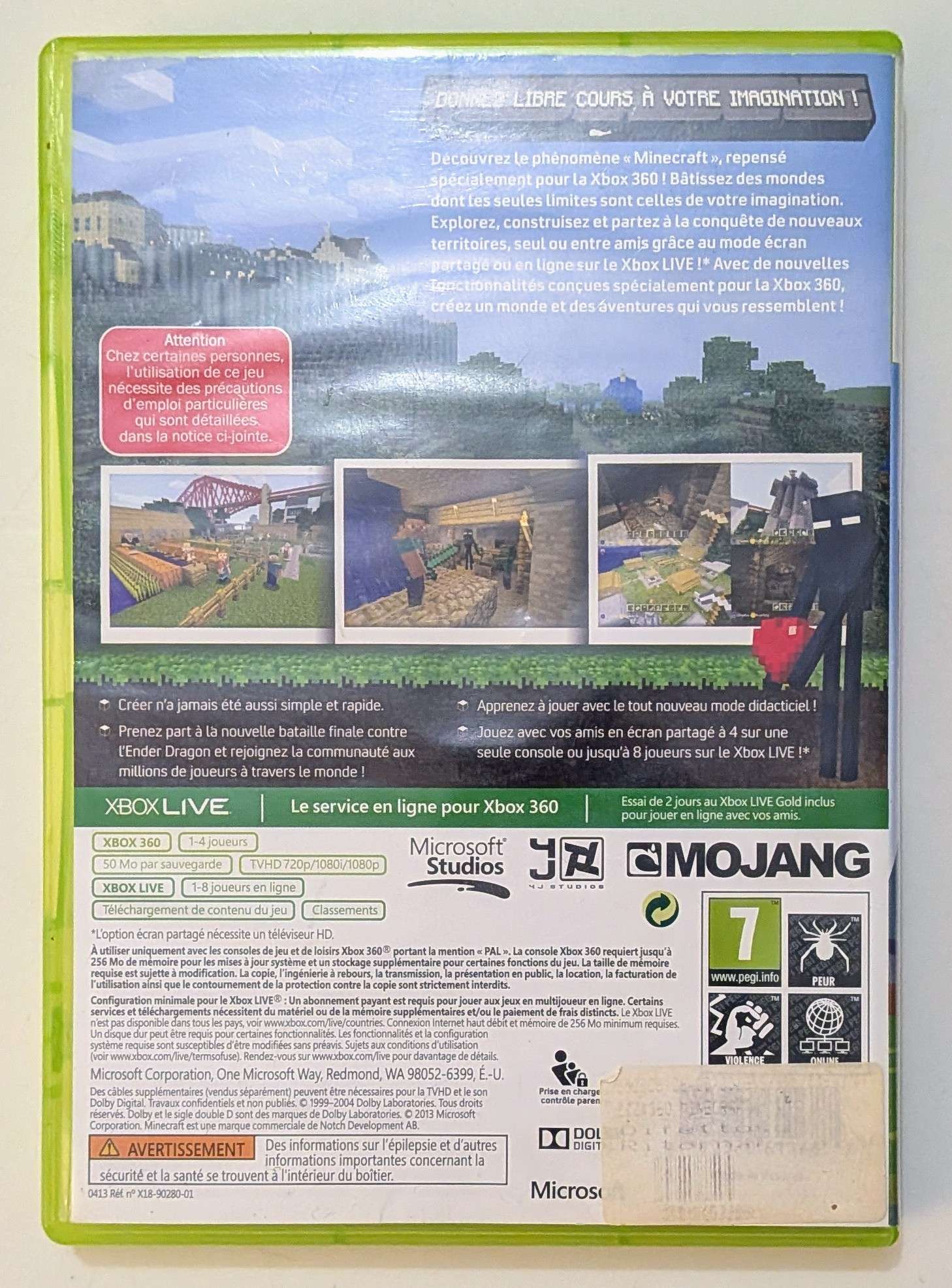 L2 - Minecraft Xbox 360 Edition - EAN : 885370611687 - ARTICLE OCCASION EN TRES BON ETAT GÉNÉRAL - BOITIER ORIGINAL - JEUX JOUABLE EN FRANCAIS - LIVRAISON ULTRA RAPIDE EN COLIS SUIVI PROTÈGE - COVER FR