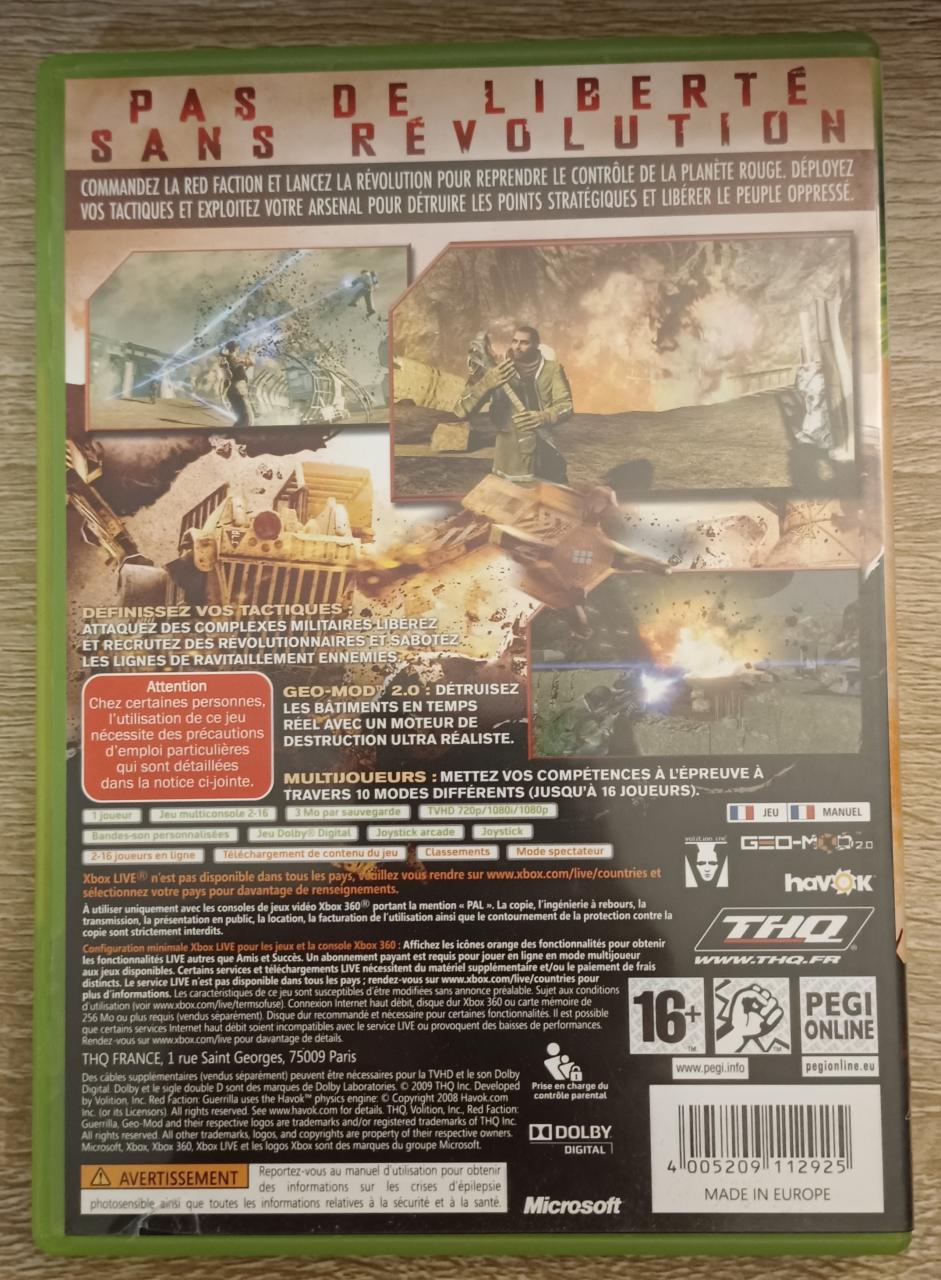 L2 - Red Faction - Guerrilla Xbox 360 - EAN : 4005209112925- ARTICLE OCCASION EN TRES BON ETAT GÉNÉRAL - BOITIER ORIGINAL - JEUX JOUABLE EN FRANCAIS - LIVRAISON ULTRA RAPIDE EN COLIS SUIVI PROTÈGE - COVER FR