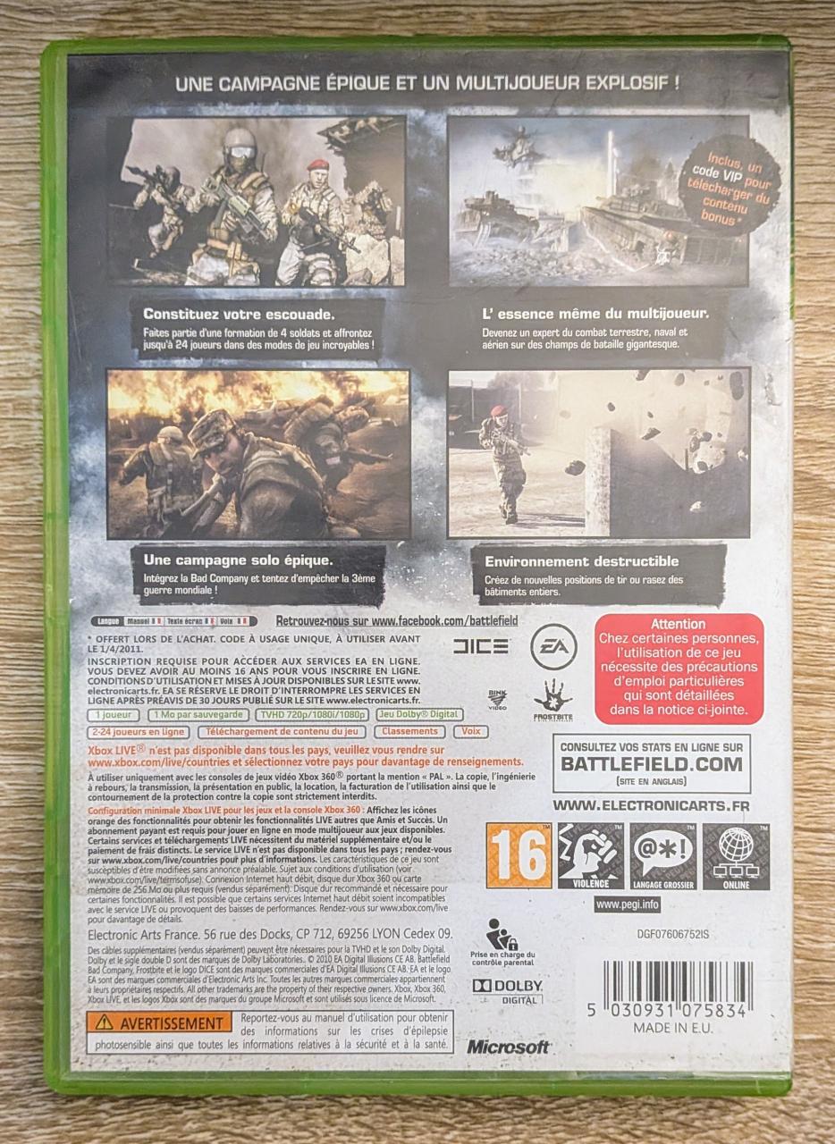 L2 - Battlefield - Bad Company 2 Xbox 360 - EAN : 5030931075834- ARTICLE OCCASION EN TRES BON ETAT GÉNÉRAL - BOITIER ORIGINAL - JEUX JOUABLE EN FRANCAIS - LIVRAISON ULTRA RAPIDE EN COLIS SUIVI PROTÈGE - COVER FR