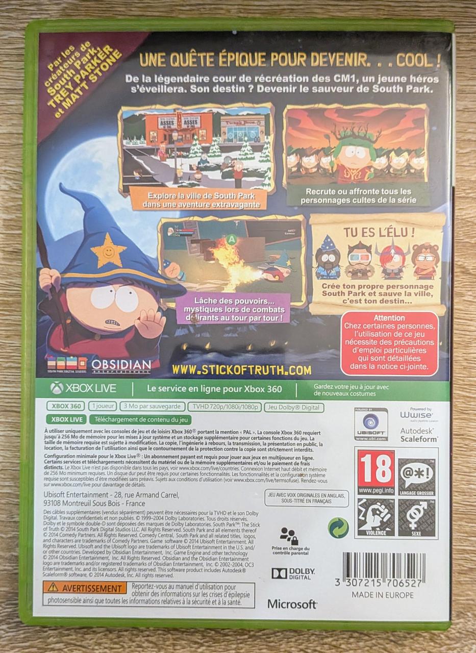 L2 - South Park - Le Bâton De La Vérité Xbox 360 - EAN : 3307215706527- ARTICLE OCCASION EN TRES BON ETAT GÉNÉRAL - BOITIER ORIGINAL - JEUX JOUABLE EN FRANCAIS - LIVRAISON ULTRA RAPIDE EN COLIS SUIVI PROTÈGE - COVER FR
