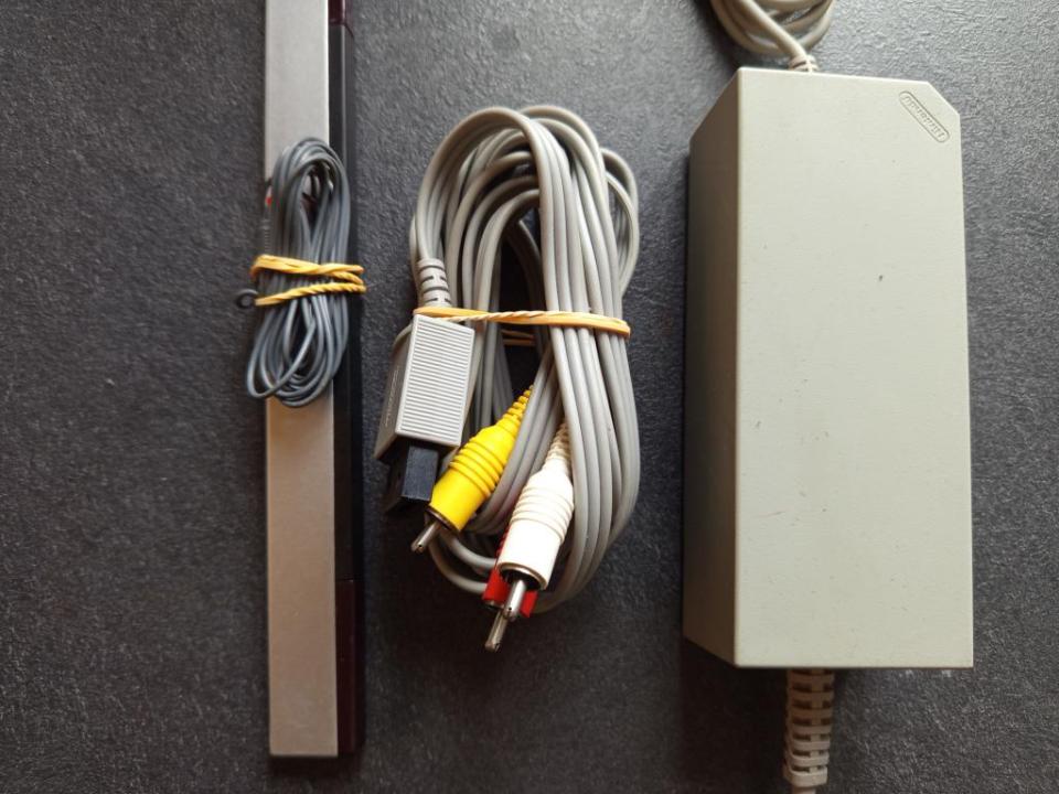 Console Nintendo Wii vendue avec ses câbles secteur, péritel et sensor barre en état correct/moyen.