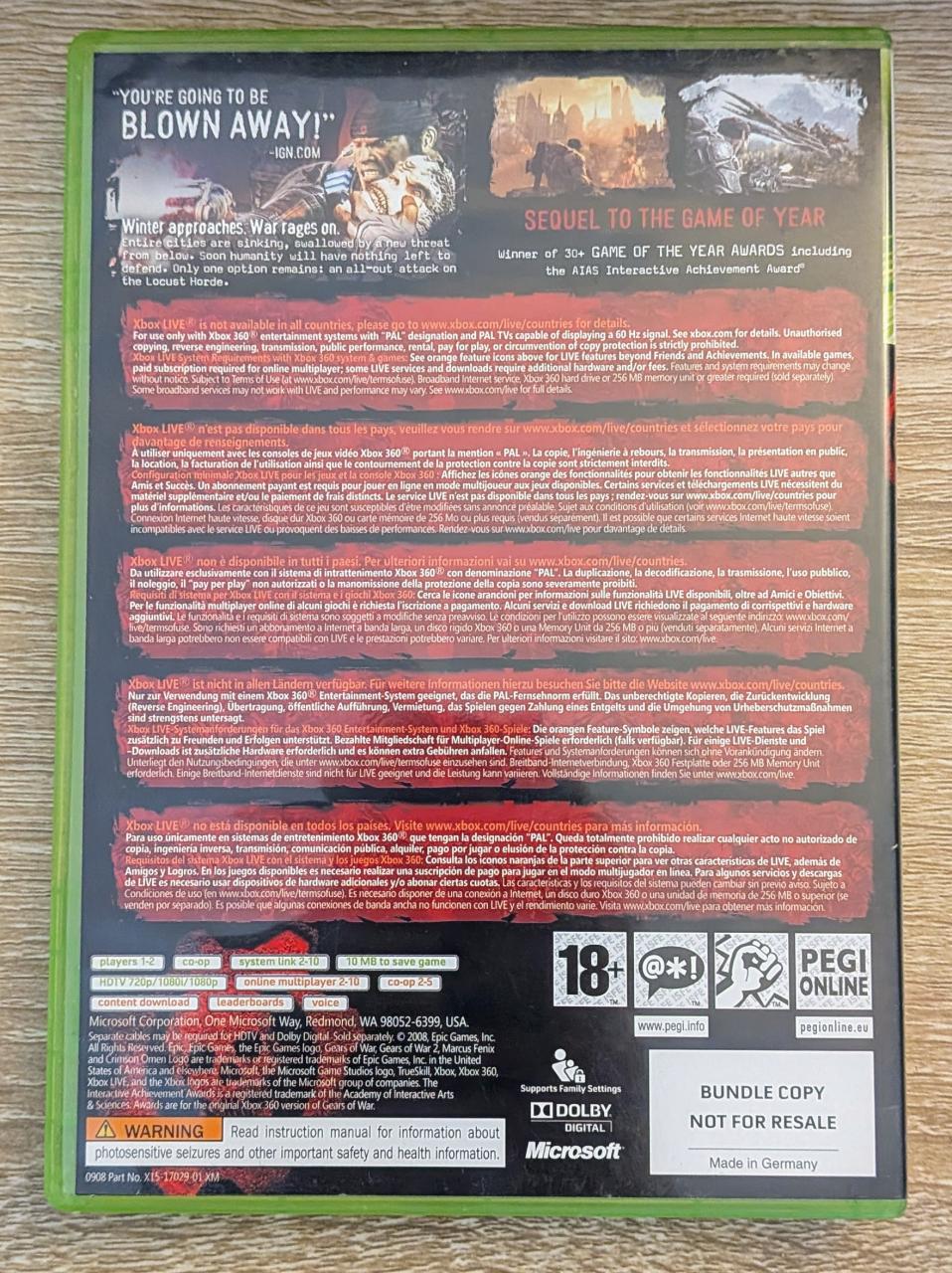 L2 - Gears Of War 2 Xbox 360 - EAN : 5050053593115 - ARTICLE OCCASION EN TRES BON ETAT GÉNÉRAL - BOITIER ORIGINAL - JEUX JOUABLE EN FRANCAIS - LIVRAISON ULTRA RAPIDE EN COLIS SUIVI PROTÈGE - COVER E.U BUNDLE COPY