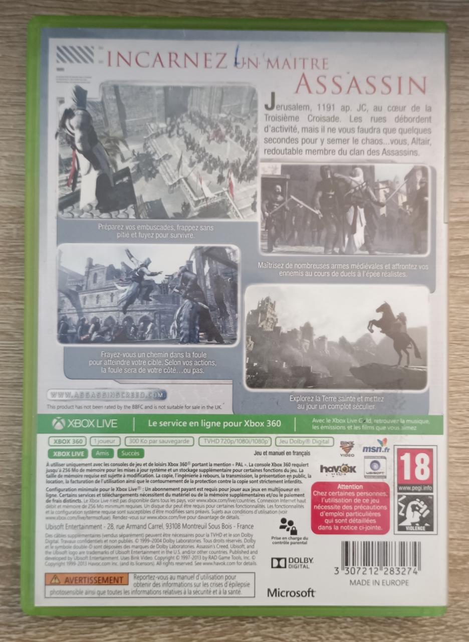 L2 - Assassin's Creed Best-Sellers Classics Xbox 360 - EAN : 3307212283274- ARTICLE OCCASION EN TRES BON ETAT GÉNÉRAL - BOITIER ORIGINAL - JEUX JOUABLE EN FRANCAIS - LIVRAISON ULTRA RAPIDE EN COLIS SUIVI PROTÈGE - COVER FR - COMPLET - AC360/FRA/INPLA