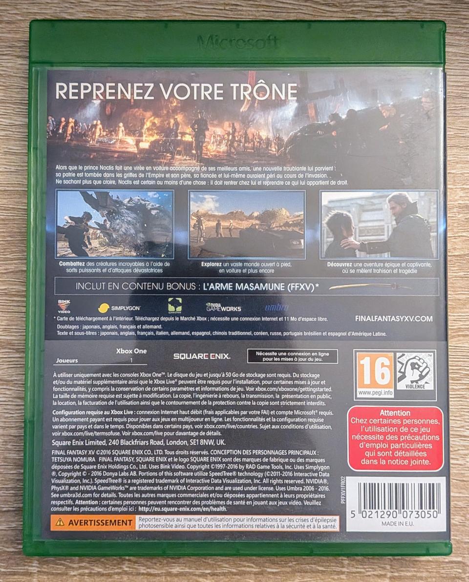 L2 - Final Fantasy Xv - Day One Edition Xbox One - EAN : 5021290073050 - ARTICLE OCCASION EN TRES BON ETAT GÉNÉRAL - BOITIER ORIGINAL XBOX ONE - JEUX JOUABLE EN FRANCAIS - LIVRAISON ULTRA RAPIDE EN COLIS SUIVI PROTÈGE - COVER FR