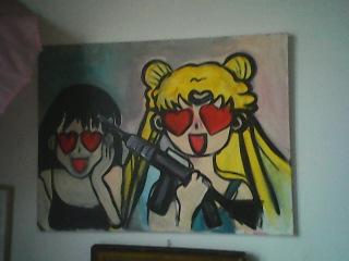 Deux tableaux peints en acrylique de 60 cm sur 80 représentant une version réaliste de Sailor Moon peint pendant le confinement en 2020