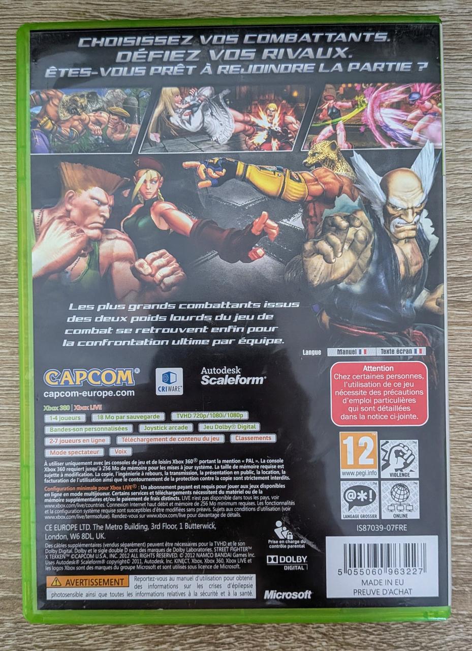 L3 - Street Fighter X Tekken Xbox 360 - EAN : 5055060963227 - ARTICLE OCCASION EN TRES BON ETAT GÉNÉRAL - BOITIER ORIGINAL XBOX 360 - JEUX JOUABLE EN FRANCAIS - LIVRAISON ULTRA RAPIDE EN COLIS SUIVI PROTÈGE - COVER FR - COMPLET
