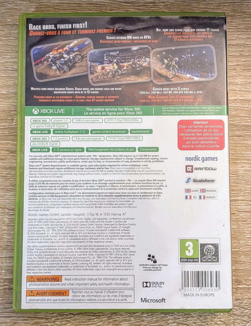 L3 - Mx Vs Atv Supercross Xbox 360 - EAN : 9006113006930 - ARTICLE OCCASION EN TRES BON ETAT GÉNÉRAL - BOITIER ORIGINAL XBOX 360 - JEUX JOUABLE EN FRANCAIS - LIVRAISON ULTRA RAPIDE EN COLIS SUIVI PROTÈGE - COVER FR - SANS DOCUMENTATION + BONUS JEU OFFERT