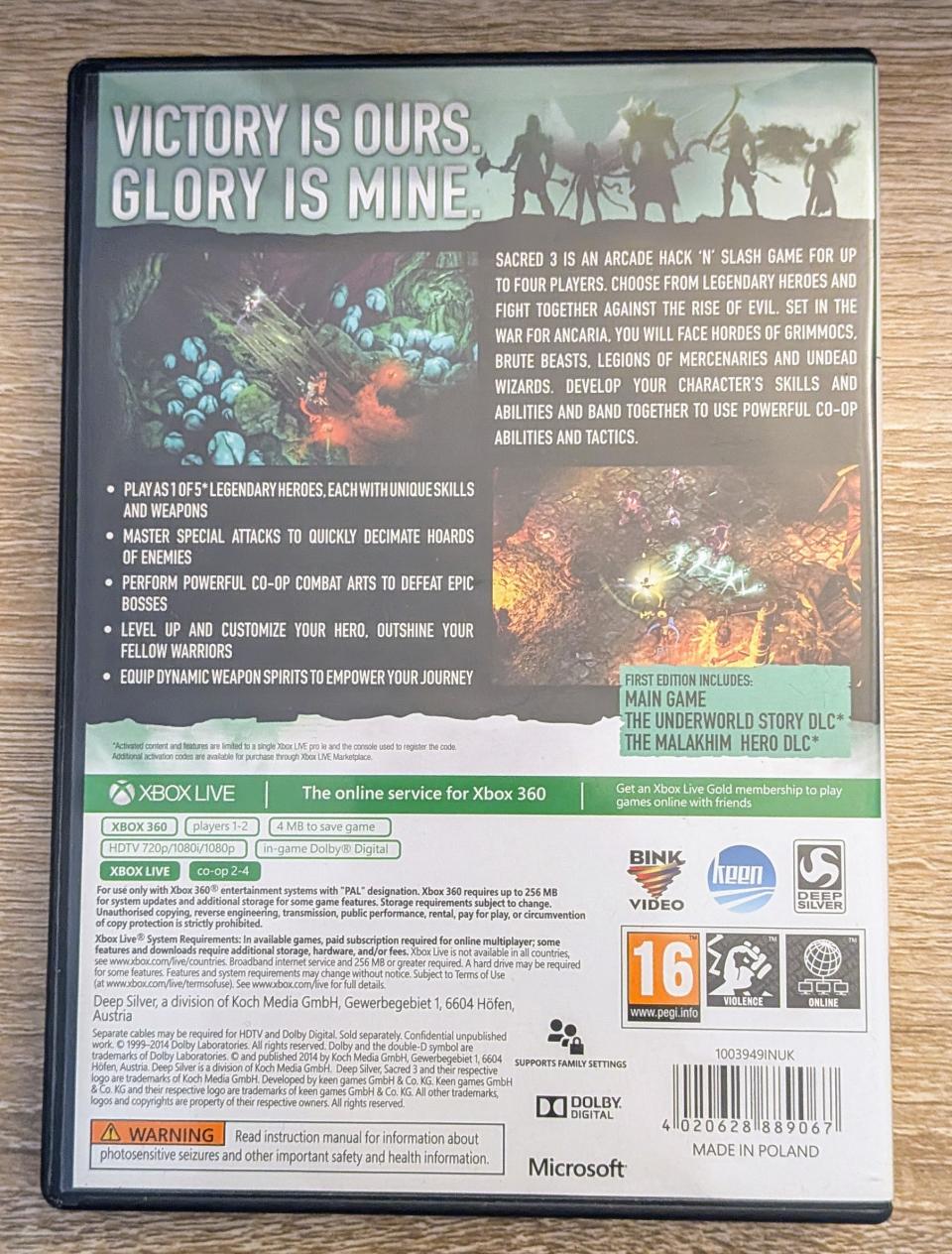 L2 - Sacred 3 - First Edition Xbox 360 - EAN : 4020628889067 - ARTICLE OCCASION EN TRES BON ETAT GÉNÉRAL - BOITIER BLACKCASE - JEUX JOUABLE EN FRANCAIS - LIVRAISON ULTRA RAPIDE EN COLIS SUIVI PROTÈGE - COVER E.U