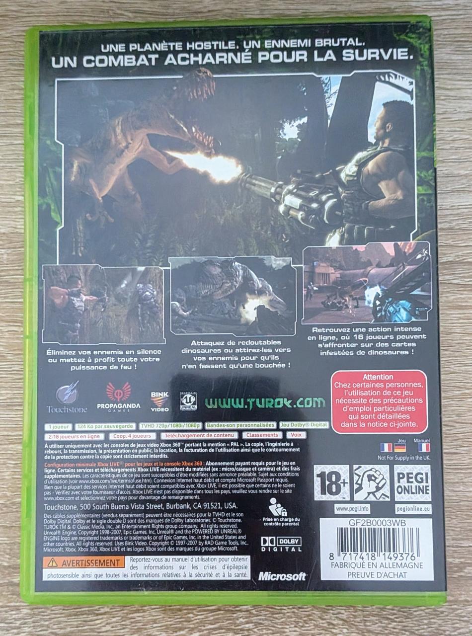 L3 - Turok Xbox 360 - EAN : 8717418149376 - ARTICLE OCCASION EN TRES BON ETAT GÉNÉRAL - BOITIER ORIGINAL XBOX 360 - JEUX JOUABLE EN FRANCAIS - LIVRAISON ULTRA RAPIDE EN COLIS SUIVI PROTÈGE - COVER FR - COMPLET