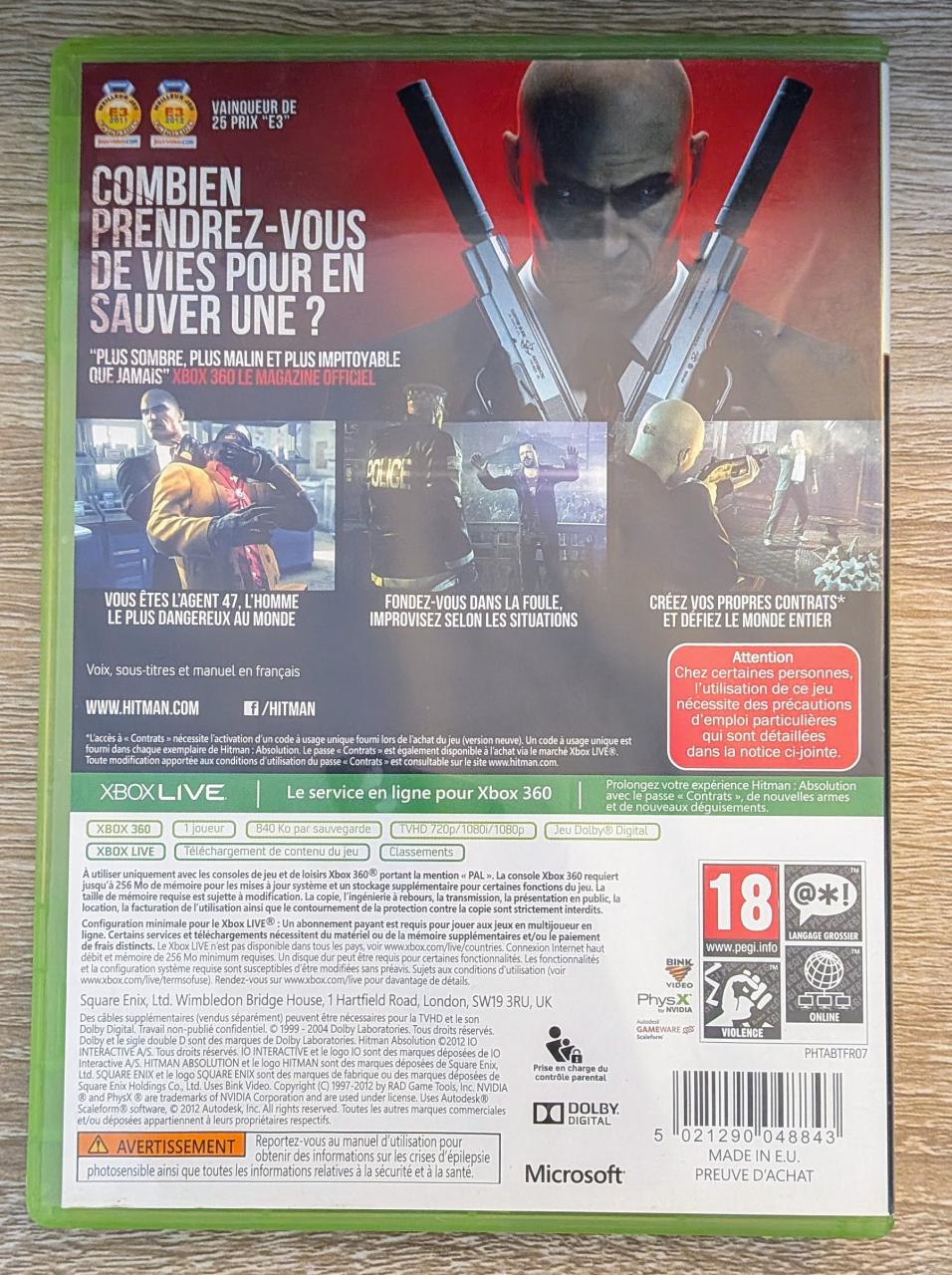L3 - Hitman - Absolution Xbox 360 - EAN : 5021290048843 - ARTICLE OCCASION EN TRES BON ETAT GÉNÉRAL - BOITIER ORIGINAL XBOX 360 - JEUX JOUABLE EN FRANCAIS - LIVRAISON ULTRA RAPIDE EN COLIS SUIVI PROTÈGE - COVER FR - COMPLET