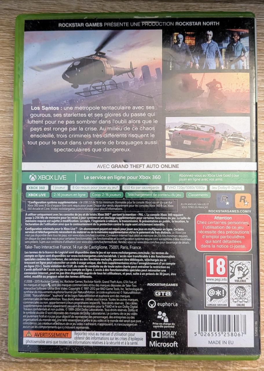 L1 - Grand Theft Auto V Xbox 360 - EAN : 5026555258067 - ARTICLE OCCASION EN TRES BON ETAT GÉNÉRAL - BOITIER ORIGINAL - JEUX JOUABLE EN FRANCAIS - LIVRAISON ULTRA RAPIDE EN COLIS SUIVI PROTÈGE - COVER E.U