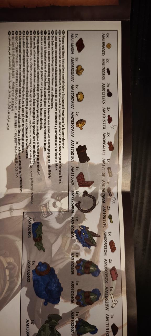 Ce set collector de l'attaque du Pandaren sur sa tortue est en bon état général, une patte est cassée et recollée et une pièce est manquante, sur la deuxième image on peut voir celle-ci j'ai écrit le nombre qu'il y a dans le carton et la boîte présente juste un petit peut de dégâts de stockage dans un grenier.