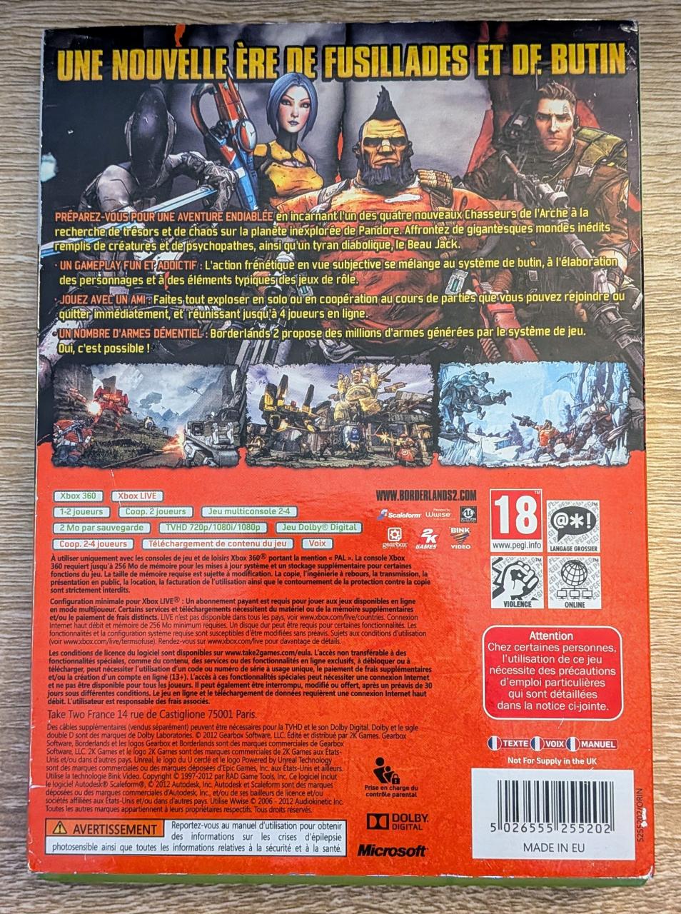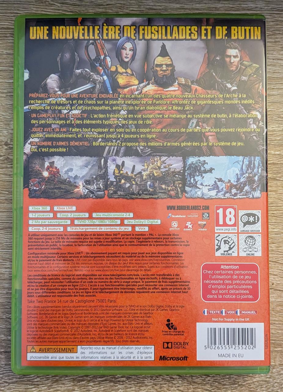 L3 : Borderlands Ii Xbox 360 / EAN : 5026555255202 - ARTICLE OCCASION EN TRES BON ETAT GENERAL - TEST MACHINE OK - PACK COMPLET JOUABLE EN FRANCAIS - LIVRAISON SUPER RAPIDE EN COLIS SUIVI PROTEGE - COVER FR