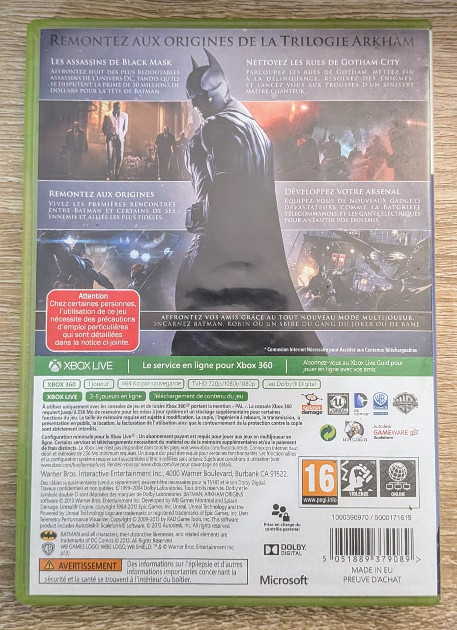 L1 - Batman - Arkham Origins Xbox 360 - EAN : 5051889379089 - ARTICLE OCCASION EN TRES BON ETAT GÉNÉRAL - BOITIER ORIGINAL - JEUX JOUABLE EN FRANCAIS - LIVRAISON ULTRA RAPIDE EN COLIS SUIVI PROTÈGE - COVER FR
