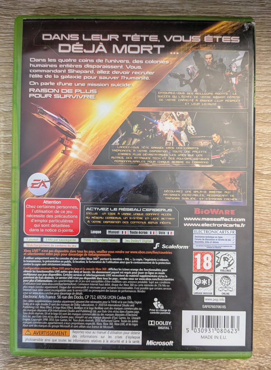 L1 - Mass Effect 2 Xbox 360 - EAN : 5030931080623 - ARTICLE OCCASION EN TRES BON ETAT GÉNÉRAL - BOITIER ORIGINAL - JEUX JOUABLE EN FRANCAIS - LIVRAISON ULTRA RAPIDE EN COLIS SUIVI PROTÈGE - COVER FR