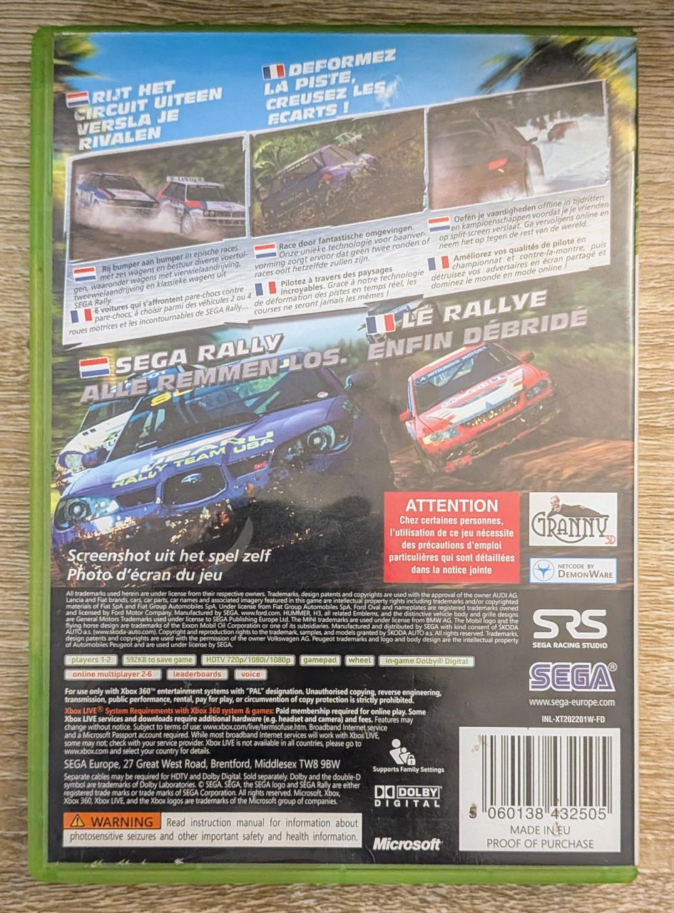 L1 - Sega Rally Xbox 360 - EAN : 5060138432505 - ARTICLE OCCASION EN TRES BON ETAT GÉNÉRAL - BOITIER ORIGINAL XBOX 360 - JEUX JOUABLE EN FRANCAIS - LIVRAISON ULTRA RAPIDE EN COLIS SUIVI PROTÈGE - COVER FR - COMPLET