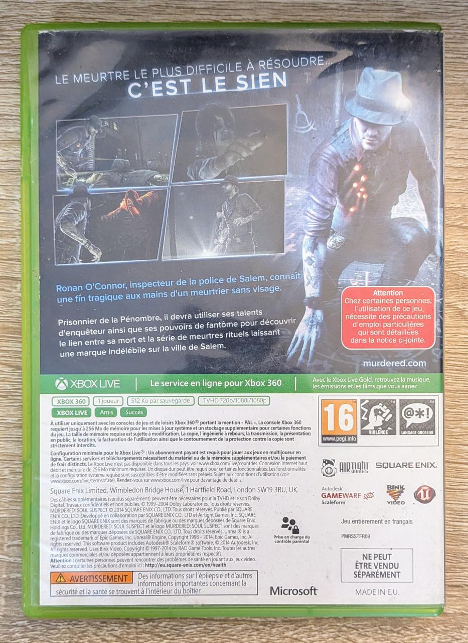 L1 - Murdered - Soul Suspect Xbox 360 - EAN : 5021290063044- ARTICLE OCCASION EN TRES BON ETAT GÉNÉRAL - BOITIER ORIGINAL XBOX 360 - JEUX JOUABLE EN FRANCAIS - LIVRAISON ULTRA RAPIDE EN COLIS SUIVI PROTÈGE - COVER FR