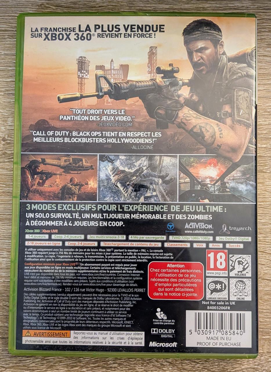L2 - Call Of Duty Black Ops Xbox 360 - EAN : 5030917085840 - ARTICLE OCCASION EN TRES BON ETAT GÉNÉRAL - BOITIER ORIGINAL XBOX 360 - JEUX JOUABLE EN FRANCAIS - LIVRAISON ULTRA RAPIDE EN COLIS SUIVI PROTÈGE - COVER FR - COMPLET