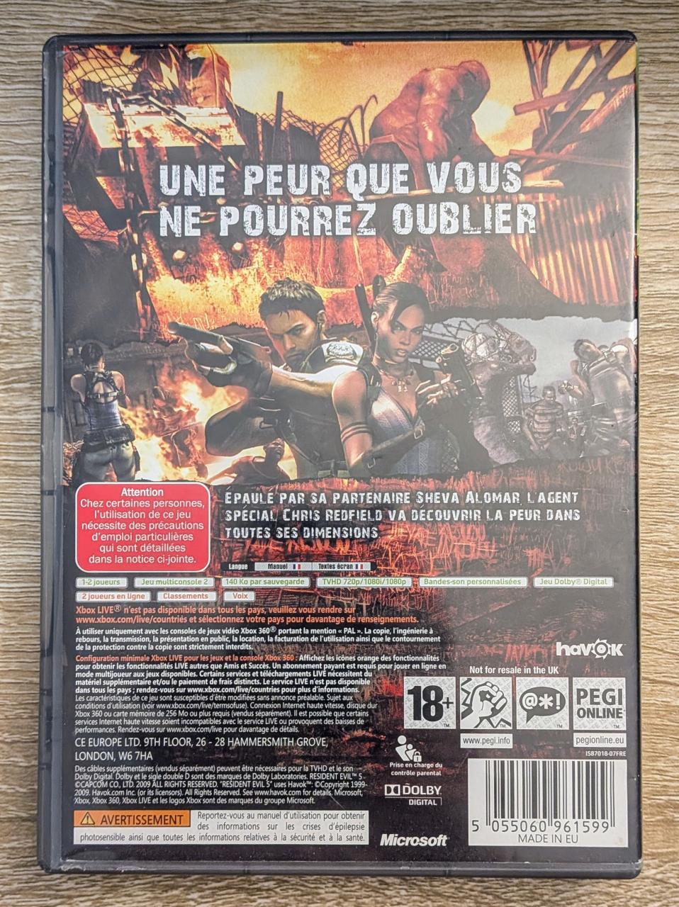 L2 - Resident Evil 5 Xbox 360 - EAN : 5055060961599 - ARTICLE OCCASION EN TRES BON ETAT GÉNÉRAL - BOITIER ORIGINAL XBOX 360 - JEUX JOUABLE EN FRANCAIS - LIVRAISON ULTRA RAPIDE EN COLIS SUIVI PROTÈGE - COVER FR - COMPLET