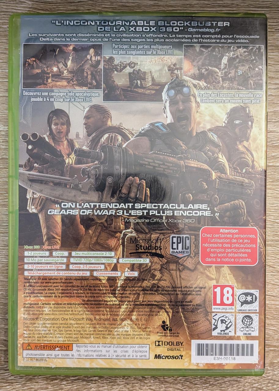 L1 - Gears Of War 3 Xbox 360- EAN : 0885370309690 - ARTICLE OCCASION EN TRES BON ETAT GÉNÉRAL - BOITIER ORIGINAL XBOX ONE - JEUX JOUABLE EN FRANCAIS - LIVRAISON ULTRA RAPIDE EN COLIS SUIVI PROTÈGE - COVER E.U