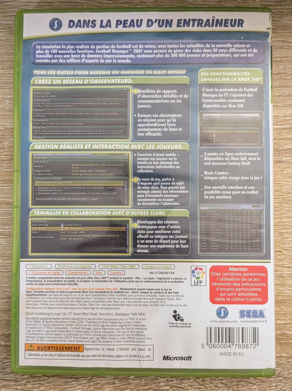 L1 - Football Manager 2007 Xbox 360 - EAN : 5060004769872 - ARTICLE OCCASION EN TRES BON ETAT GÉNÉRAL - BOITIER ORIGINAL XBOX ONE - JEUX JOUABLE EN FRANCAIS - LIVRAISON ULTRA RAPIDE EN COLIS SUIVI PROTÈGE - COVER E.U