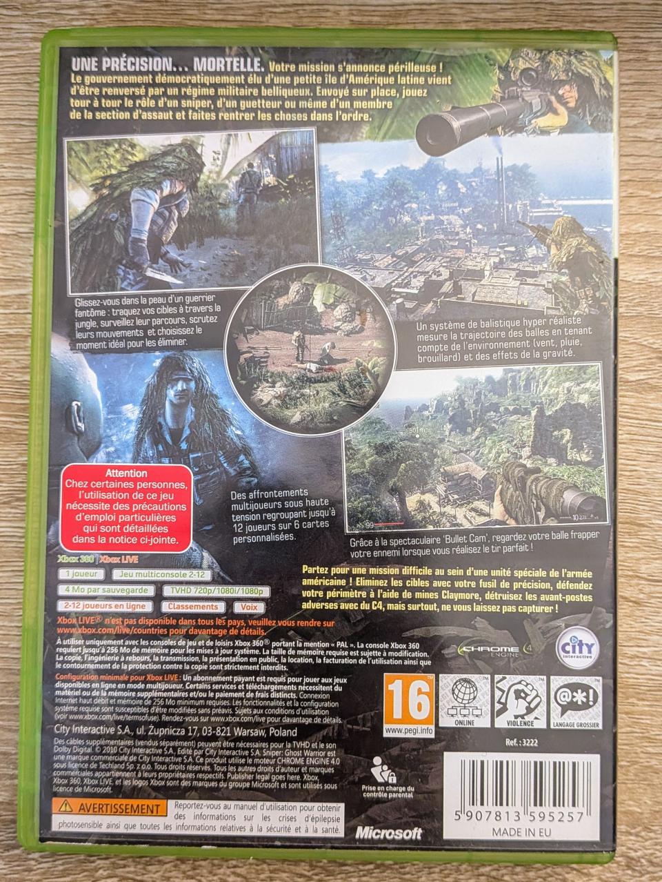 L1 - Sniper Ghost Warrior Xbox 360 - EAN : 5907813595257 - ARTICLE OCCASION EN TRES BON ETAT GÉNÉRAL - BOITIER ORIGINAL - JEUX ET COVER EN FRANCAIS - LIVRAISON ULTRA RAPIDE EN COLIS SUIVI PROTÈGE - COMPLET