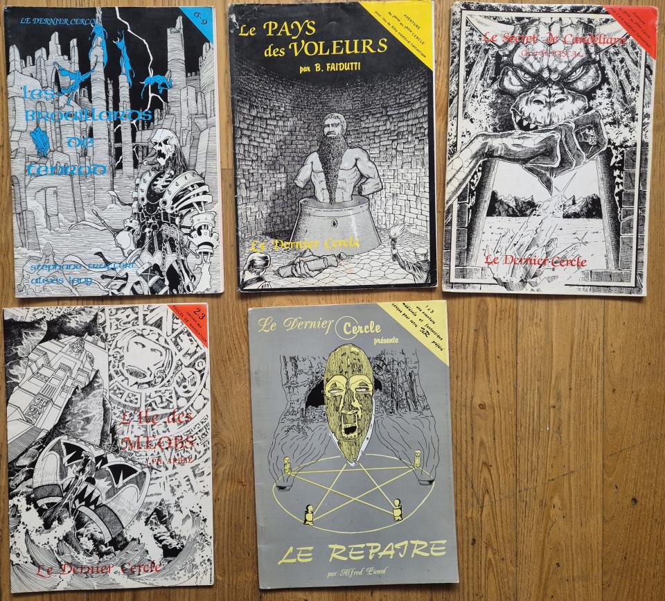 Je vends 5 modules publiés dans les années 80 par le Dernier Cercle. Ils sont prévus pour un système générique, proche d'AD&D.