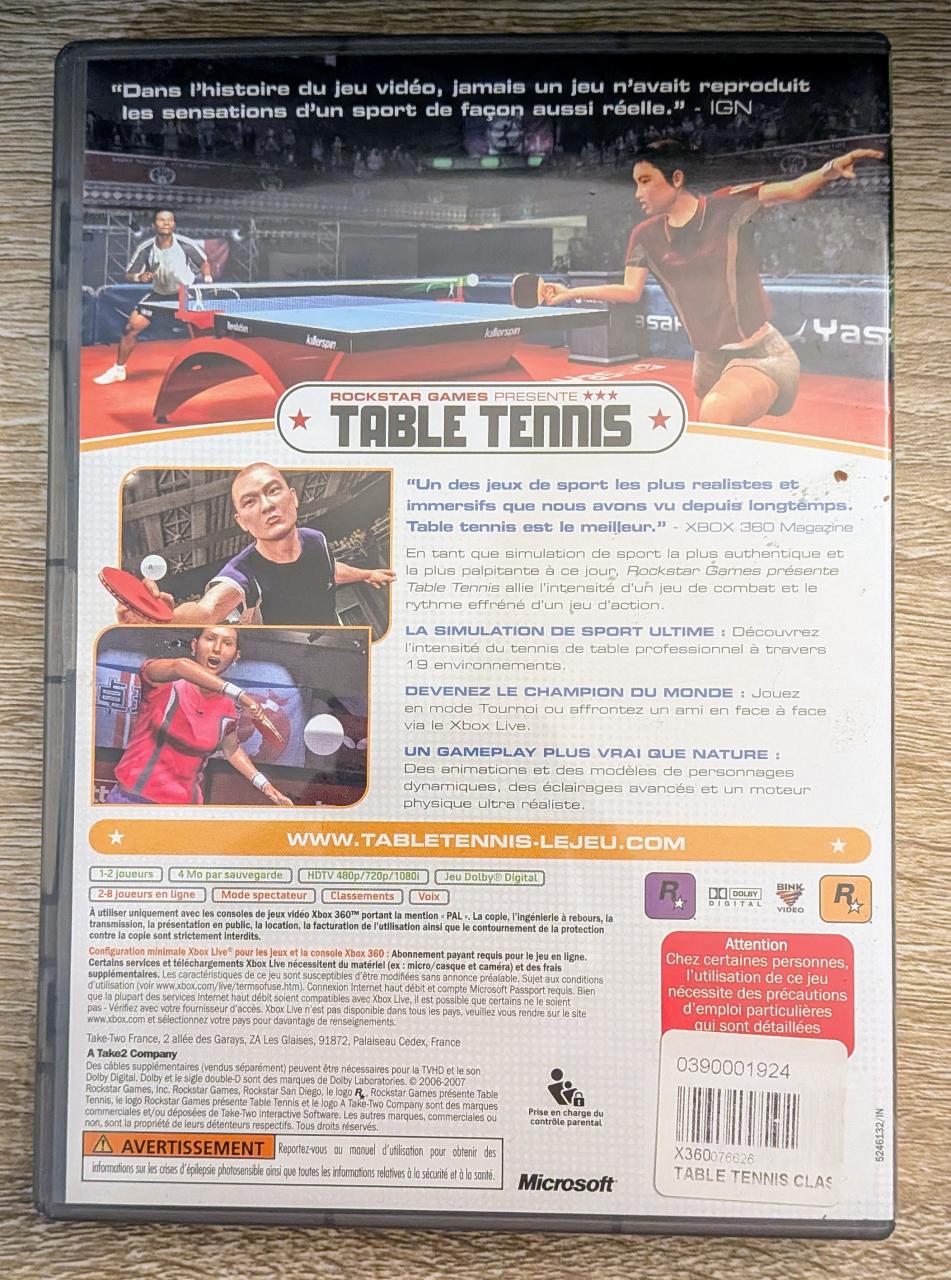 L2 - Table Tennis Xbox 360 - EAN : 0390001924 - ARTICLE OCCASION EN TRES BON ETAT GÉNÉRAL - BOITIER ORIGINAL - JEUX JOUABLE EN FRANCAIS - LIVRAISON ULTRA RAPIDE EN COLIS SUIVI PROTÈGE - COVER FR
