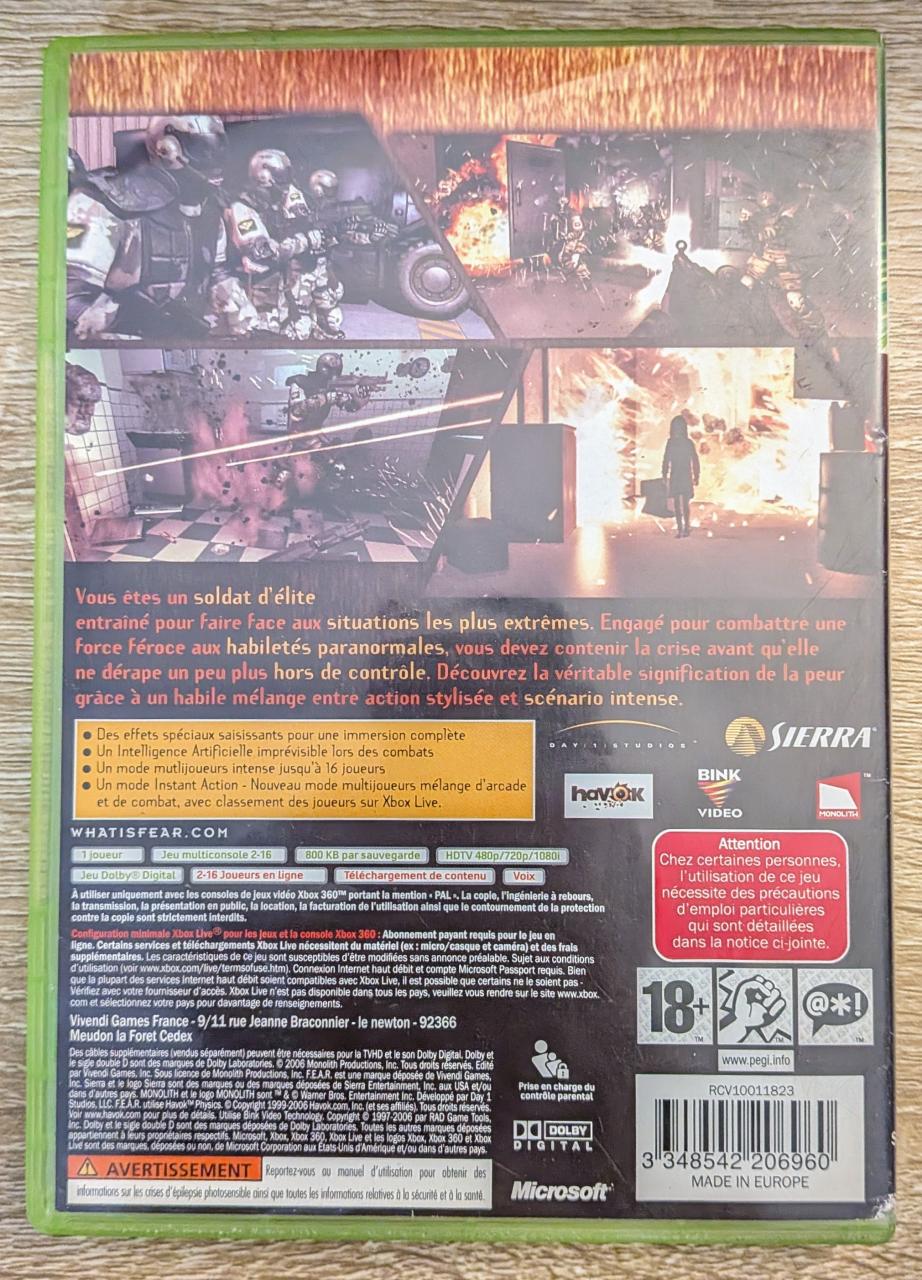 L2 - F.E.A.R. Xbox 360 First Encounter Assault Recon - Fear / EAN : 3348542206960- ARTICLE OCCASION EN TRES BON ETAT GENERAL - TEST MACHINE OK - PACK COMPLET JOUABLE EN FRANCAIS - LIVRAISON SUPER RAPIDE EN COLIS SUIVI PROTEGE - COVER FR