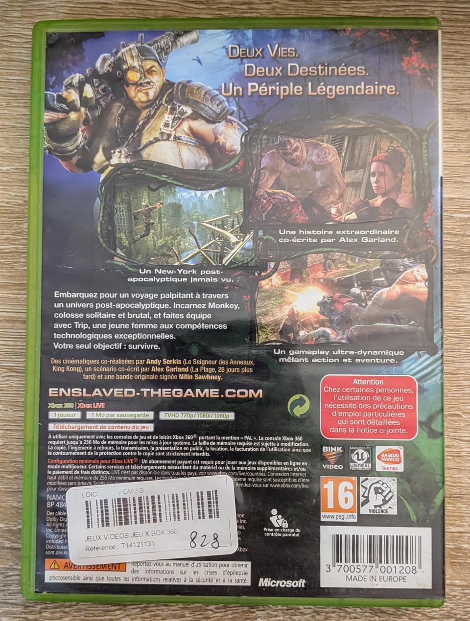 L3 -Enslaved Xbox 360 - EAN : 3700577001208 - ARTICLE OCCASION EN TRES BON ETAT GÉNÉRAL - BOITIER ORIGINAL XBOX 360 - JEUX JOUABLE EN FRANCAIS - LIVRAISON ULTRA RAPIDE EN COLIS SUIVI PROTÈGE - COVER FR - COMPLET