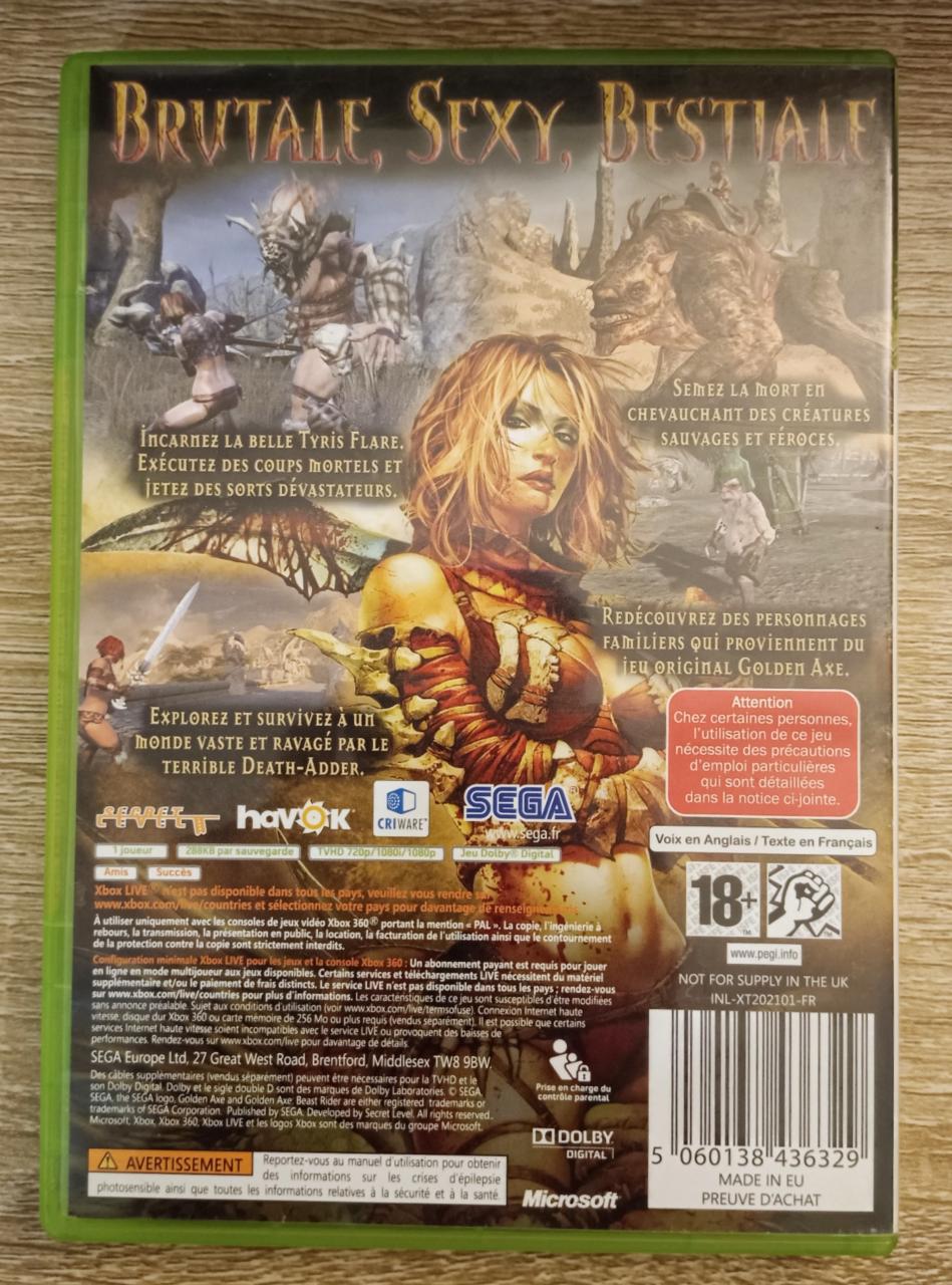L2 - Golden Axe - Beast Rider Xbox 360 - EAN : 5060138436329 - ARTICLE OCCASION EN TRES BON ETAT GÉNÉRAL - BOITIER ORIGINAL XBOX 360 - JEUX JOUABLE EN FRANCAIS - LIVRAISON ULTRA RAPIDE EN COLIS SUIVI PROTÈGE - COVER FR - COMPLET