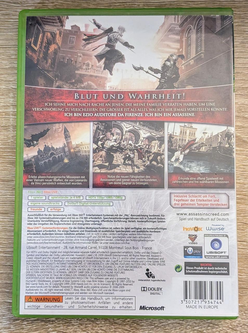 L3 - Assassin's Creed Ii Xbox 360 - EAN : 3307217934744 - ARTICLE OCCASION EN TRES BON ETAT GÉNÉRAL - BOITIER ORIGINAL - JEUX JOUABLE EN FRANCAIS - LIVRAISON ULTRA RAPIDE EN COLIS SUIVI PROTÈGE - COVER E.U - COMPLET