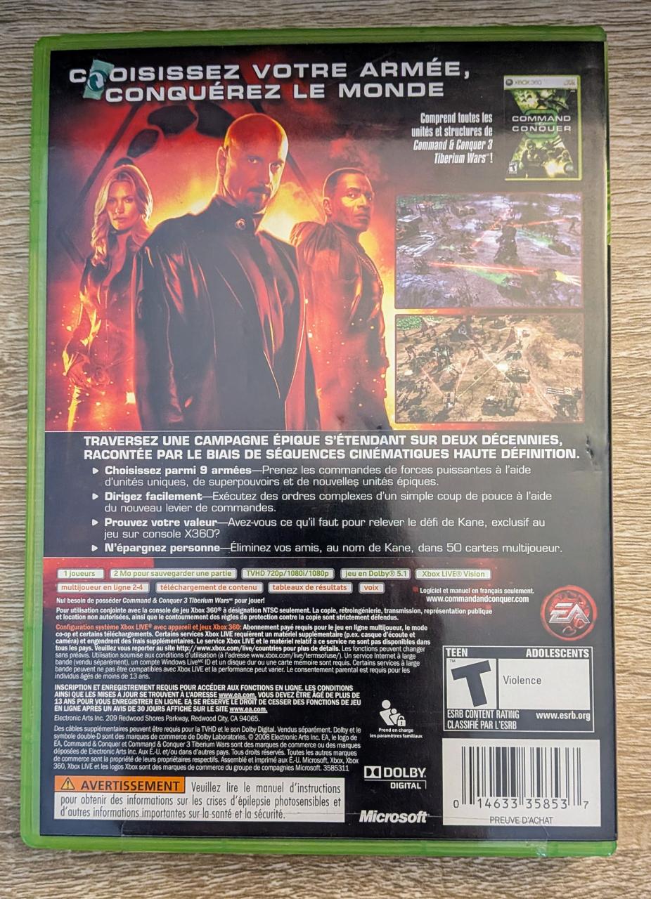 L3 - Command And Conquer 3 : La Fureur De Kane Xbox 360 - EAN : 014633358537- ARTICLE OCCASION EN TRES BON ETAT GÉNÉRAL - BOITIER ORIGINAL XBOX 360 - JEUX JOUABLE EN FRANCAIS - LIVRAISON ULTRA RAPIDE EN COLIS SUIVI PROTÈGE - COVER FR - COMPLET