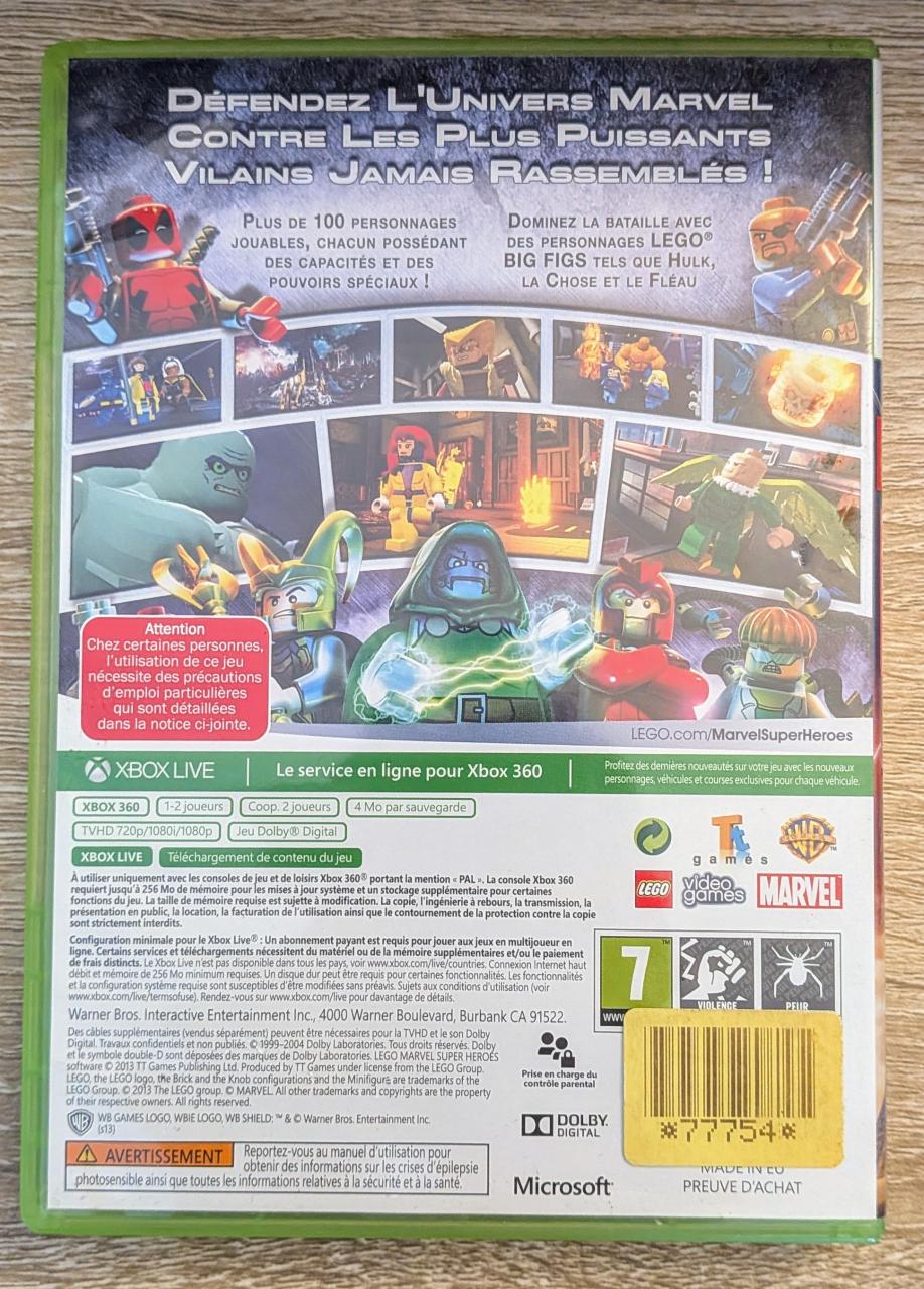 L1 - Lego Marvel Super Heroes Xbox 360 / EAN : 5051892132312 - ARTICLE OCCASION EN TRES BON ETAT GENERAL - TEST MACHINE OK - PACK COMPLET JOUABLE EN FRANCAIS - LIVRAISON SUPER RAPIDE EN COLIS SUIVI PROTEGE - COVER E.U