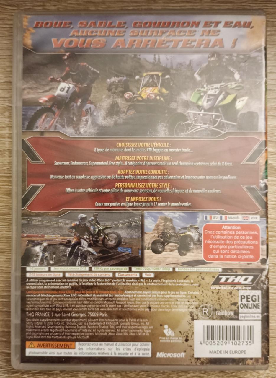 L1 - Mx Vs Atv - Extrême Limite Xbox 360 - EAN : 4005209102735 - ARTICLE OCCASION EN BON ETAT GÉNÉRAL - BOITIER CHRISTAL CASE - JEUX JOUABLE EN FRANCAIS - LIVRAISON ULTRA RAPIDE EN COLIS SUIVI PROTÈGE - COVER FR