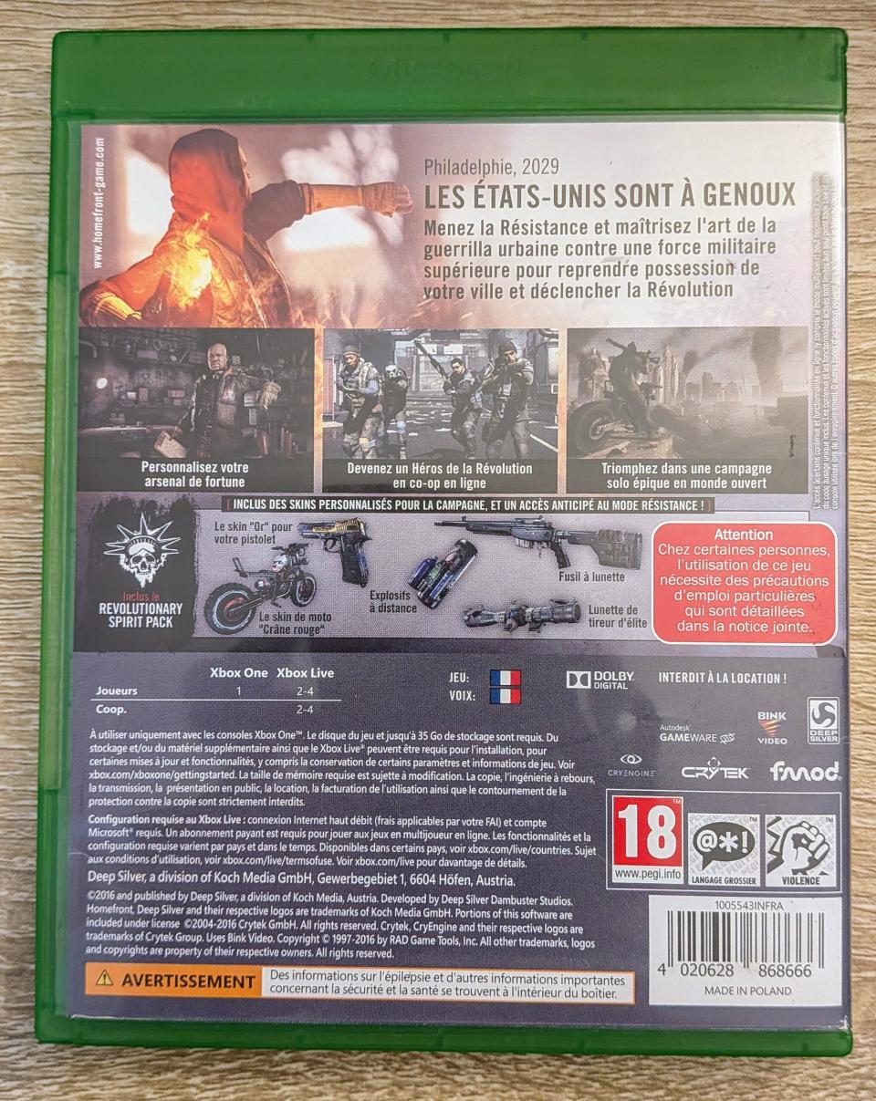 L2 - Homefront - The Revolution - Day One Edition Xbox One - EAN : 4020628868666 - ARTICLE OCCASION EN TRES BON ETAT GÉNÉRAL - BOITIER ORIGINAL - JEUX JOUABLE EN FRANCAIS - LIVRAISON ULTRA RAPIDE EN COLIS SUIVI PROTÈGE - COVER FR - COMPLET