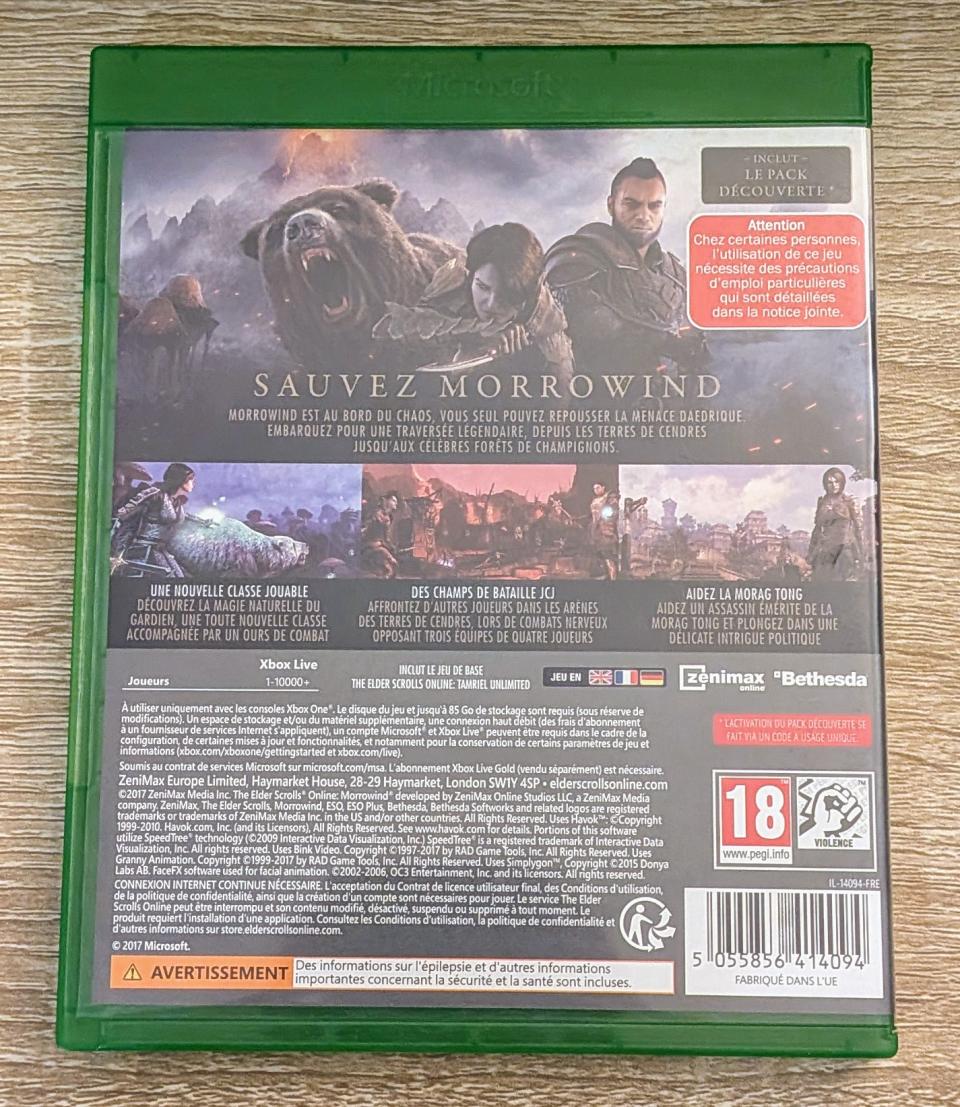 L2 -The Elder Scrolls Online - Morrowind Xbox One - EAN : 5055856414094 - ARTICLE OCCASION EN TRES BON ETAT GÉNÉRAL - BOITIER ORIGINAL XBOX ONE - JEUX JOUABLE EN FRANCAIS - LIVRAISON ULTRA RAPIDE EN COLIS SUIVI PROTÈGE - COVER FR - COMPLET