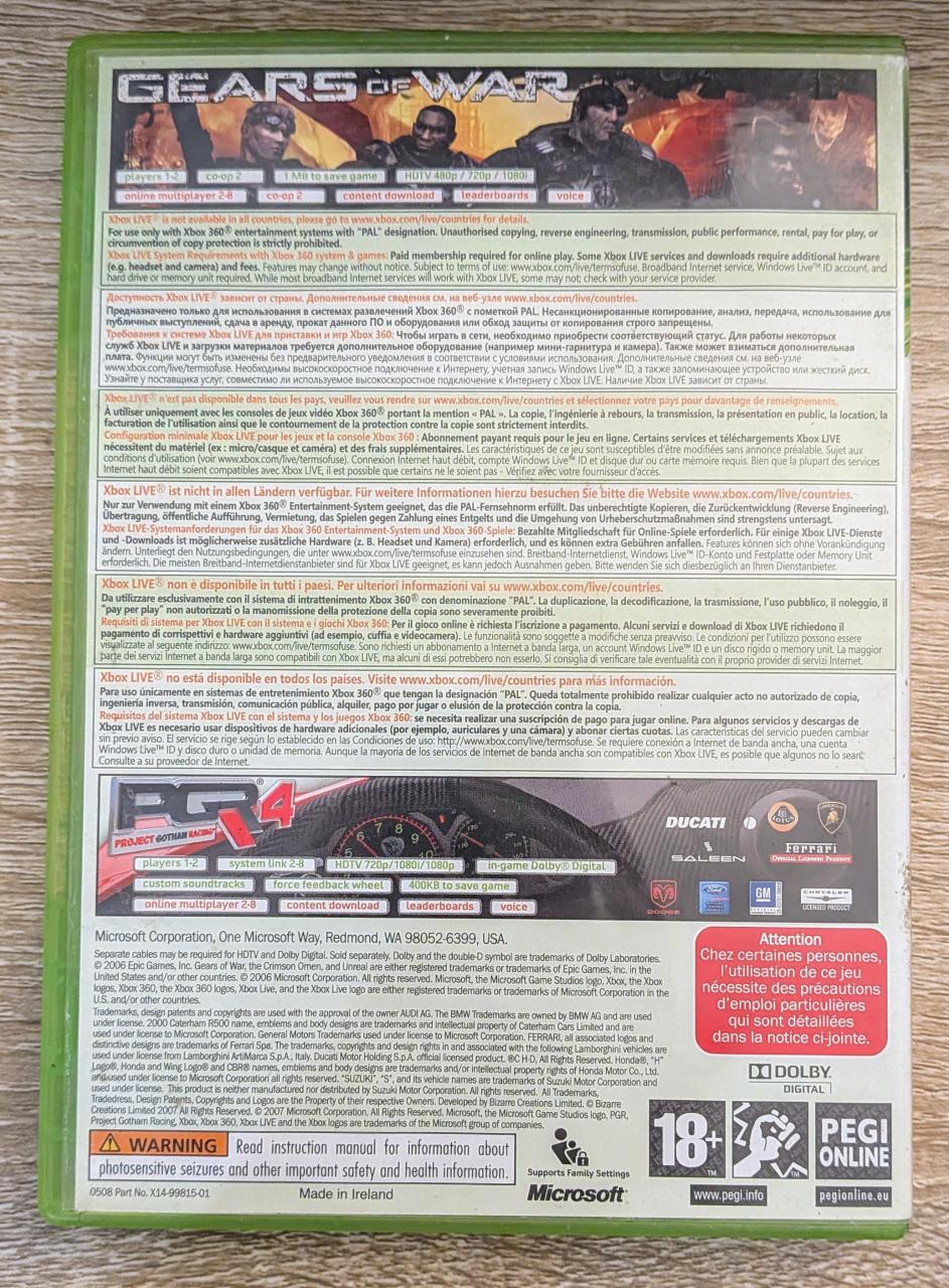 L1 - Gears Of War + Project Gotham Racing 4 Pgr4 / EAN : N/A- ARTICLE D'OCCASION EN TRES BON ETAT GÉNÉRAL - BOITIER ORIGINAL - JEUX JOUABLE EN FRANCAIS - LIVRAISON ULTRA RAPIDE EN COLIS SUIVI PROTÈGE - COVER FR - COMPLET