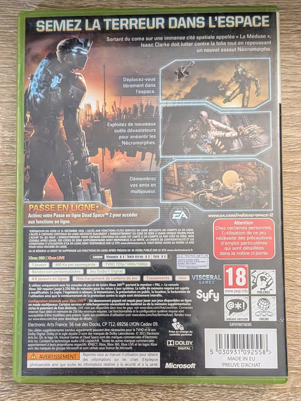 L1 - Dead Space 2 Xbox 360 / EAN : 5030931092558 - ARTICLE OCCASION EN TRES BON ETAT GENERAL - BOITIER ORIGINAL - JEUX JOUABLE EN FRANCAIS - LIVRAISON ULTRA RAPIDE EN COLIS SUIVI PROTÈGE - COVER FR - COMPLET