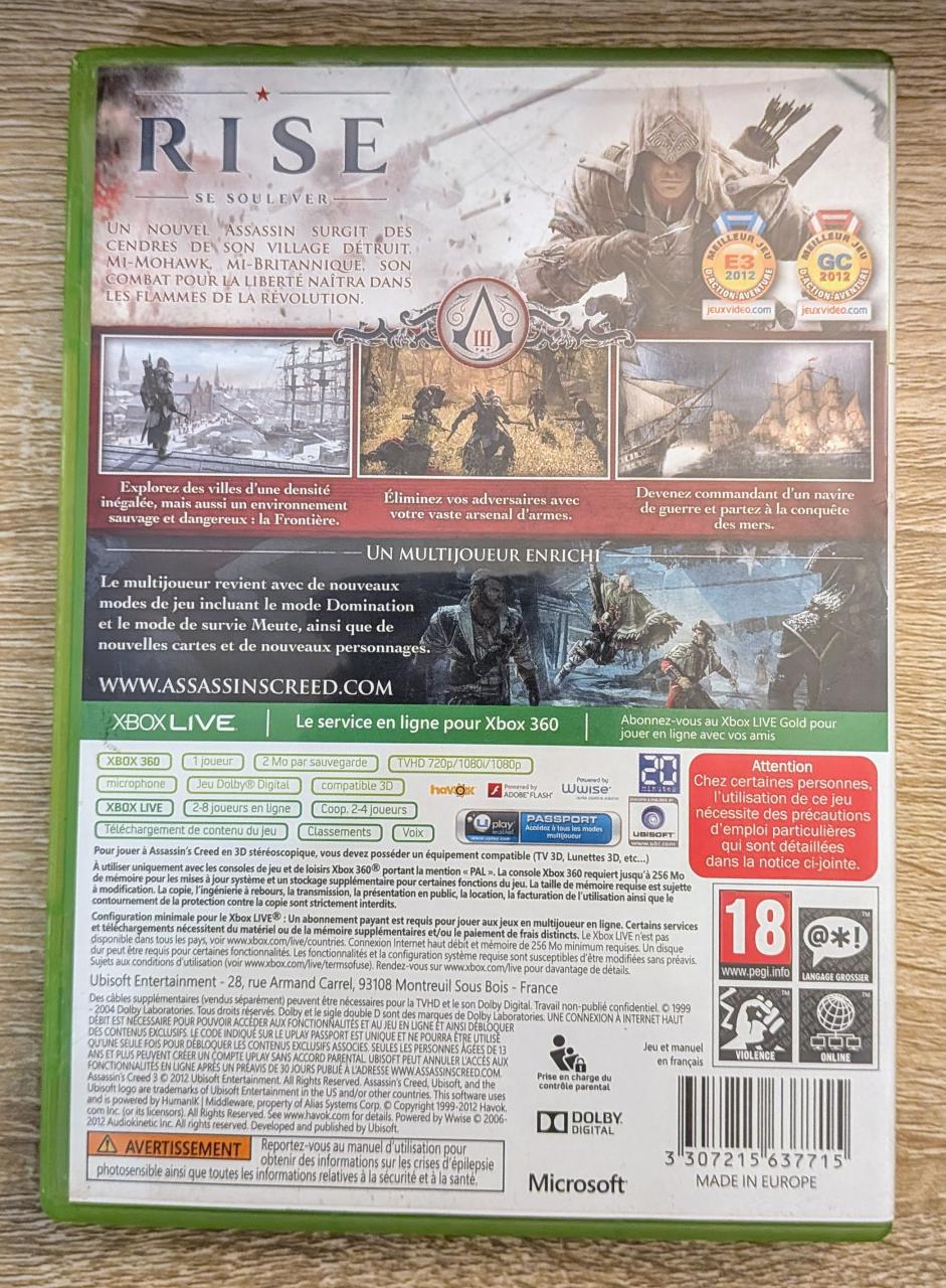 L1 - Assassin's Creed Iii Xbox 360 / EAN : 3307215637715 - ARTICLE OCCASION EN TRES BON ETAT GENERAL - BOITIER ORIGINAL - JEUX JOUABLE EN FRANCAIS - LIVRAISON ULTRA RAPIDE EN COLIS SUIVI PROTÈGE - COVER FR - COMPLET