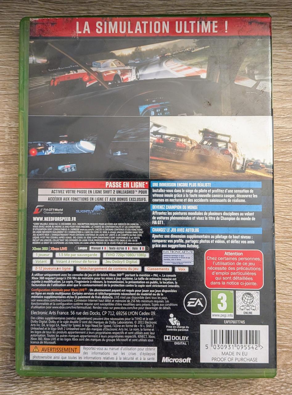 L3 - Need For Speed - Shift 2 - Unleashed Xbox 360 - EAN : 5030931095542 - ARTICLE OCCASION EN TRES BON ETAT GÉNÉRAL - BOITIER ORIGINAL XBOX 360 - JEUX JOUABLE EN FRANCAIS - LIVRAISON ULTRA RAPIDE EN COLIS SUIVI PROTÈGE - COVER FR - COMPLET