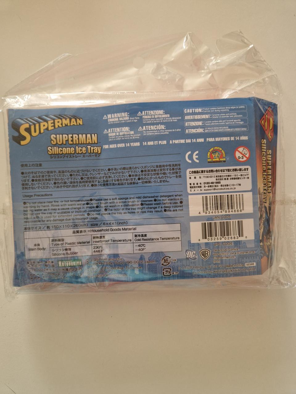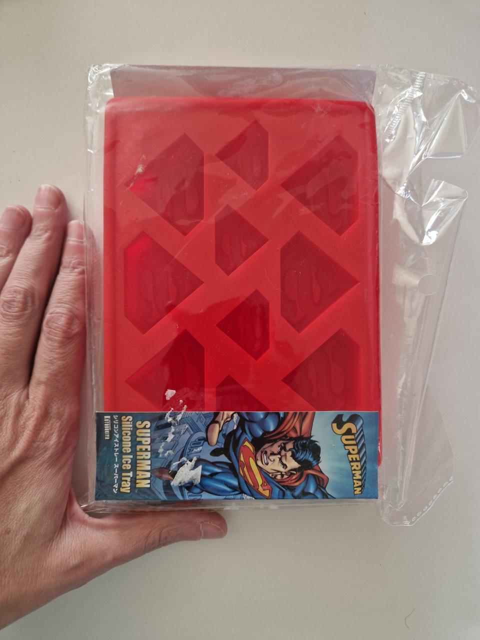 "Moule à glaçons Superman en silicone rouge, neuf sous emballage plastique.