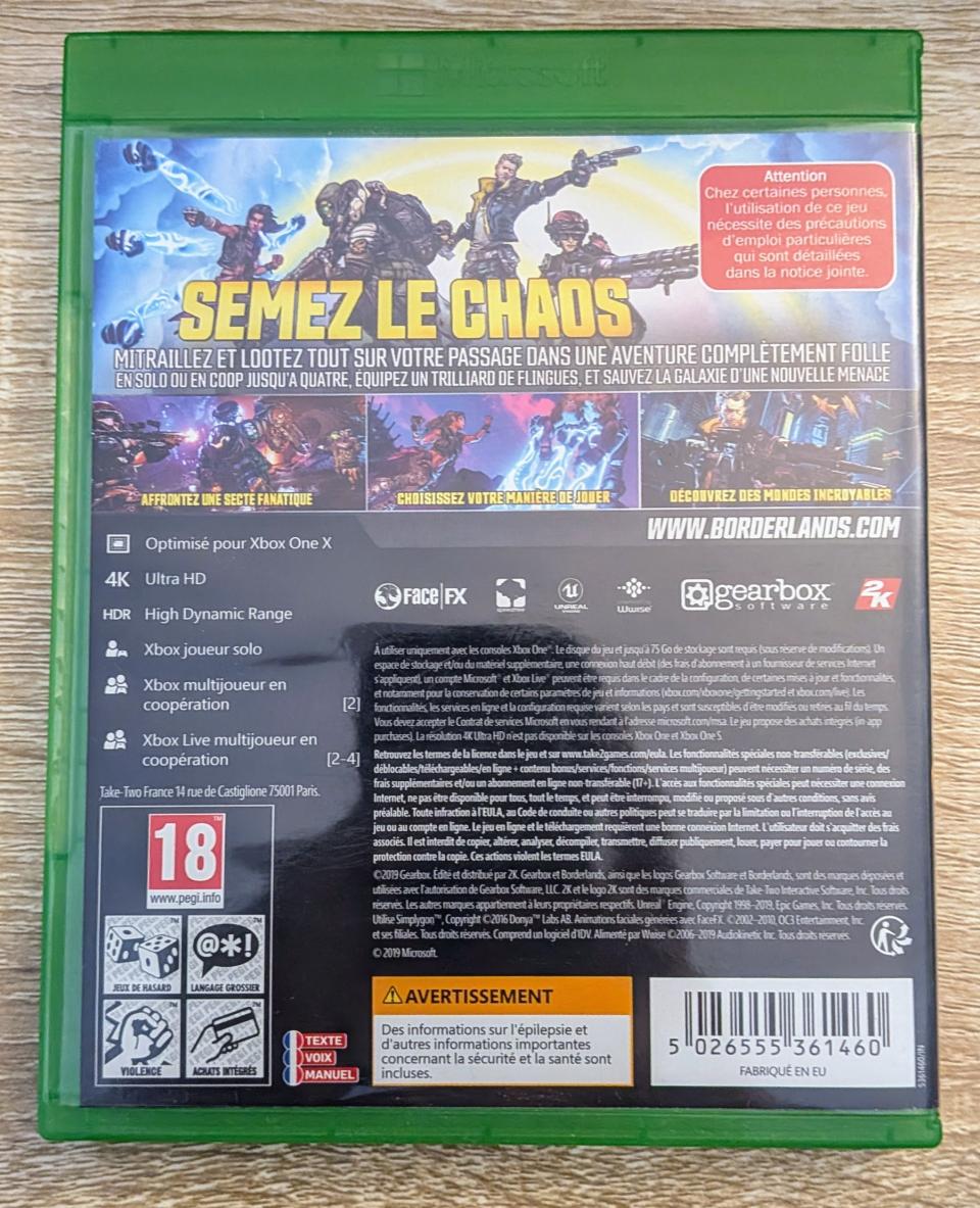 L2 - Borderlands 3 Xbox One - EAN : 5026555361460 - ARTICLE OCCASION EN TRES BON ETAT GÉNÉRAL - BOITIER ORIGINAL - JEUX JOUABLE EN FRANCAIS - LIVRAISON ULTRA RAPIDE EN COLIS SUIVI PROTÈGE - COVER FR - COMPLET
