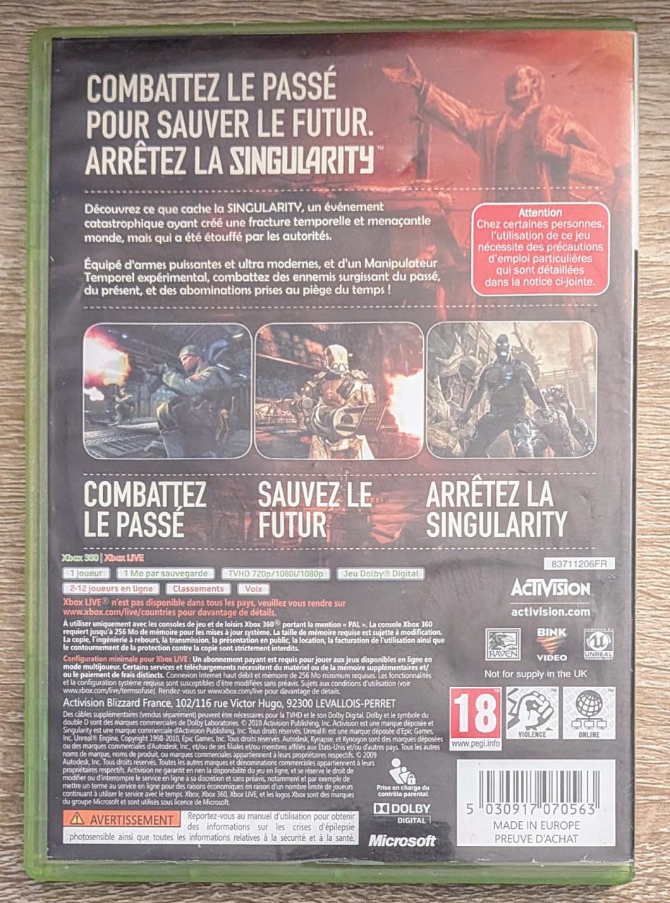 L1 - Singularity Xbox 360 - EAN : 5030917070563 - ARTICLE OCCASION EN TRES BON ETAT GÉNÉRAL - BOITIER ORIGINAL XBOX 360 - JEUX JOUABLE EN FRANCAIS - LIVRAISON ULTRA RAPIDE EN COLIS SUIVI PROTÈGE - COVER FR - COMPLET