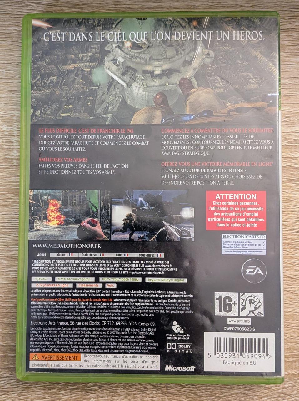 L2 - Medal Of Honor Airborne Xbox 360 / EAN : 5030931059094 - ARTICLE D'OCCASION EN TRES BON ETAT GÉNÉRAL - BOITIER ORIGINAL - JEUX ET COVER EN FRANCAIS - LIVRAISON ULTRA RAPIDE EN COLIS SUIVI PROTÈGE
