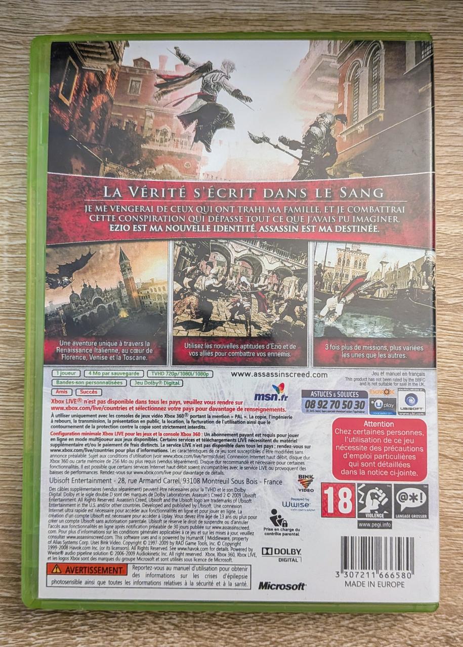 L1 - Assassin's Creed Ii Xbox 360 - EAN : 3307211666580 - ARTICLE OCCASION EN TRES BON ETAT GÉNÉRAL - BOITIER ORIGINAL XBOX 360 - JEUX JOUABLE EN FRANCAIS - LIVRAISON ULTRA RAPIDE EN COLIS SUIVI PROTÈGE - COVER FR - COMPLET