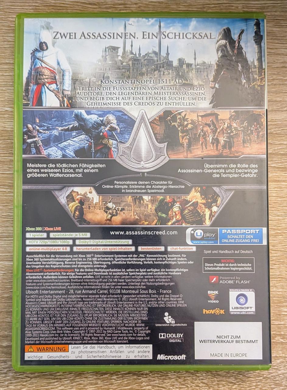 L1 - Assassin's Creed - Revelations Xbox 360 - EAN : 3307215589342 - ARTICLE OCCASION EN TRES BON ETAT GÉNÉRAL - BOITIER ORIGINAL XBOX 360 - JEUX JOUABLE EN FRANCAIS - LIVRAISON ULTRA RAPIDE EN COLIS SUIVI PROTÈGE - COVER E.U - COMPLET