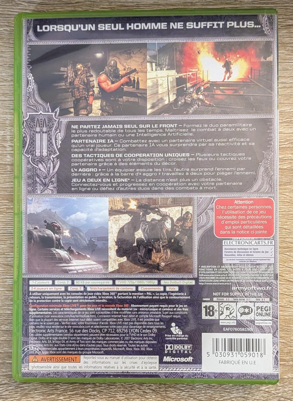 L3 - Army Of Two Xbox 360 - EAN : 5030931059018- ARTICLE OCCASION EN TRES BON ETAT GÉNÉRAL - BOITIER ORIGINAL XBOX 360 - JEUX JOUABLE EN FRANCAIS - LIVRAISON ULTRA RAPIDE EN COLIS SUIVI PROTÈGE - COVER FR + BONUS JEU OFFERT
