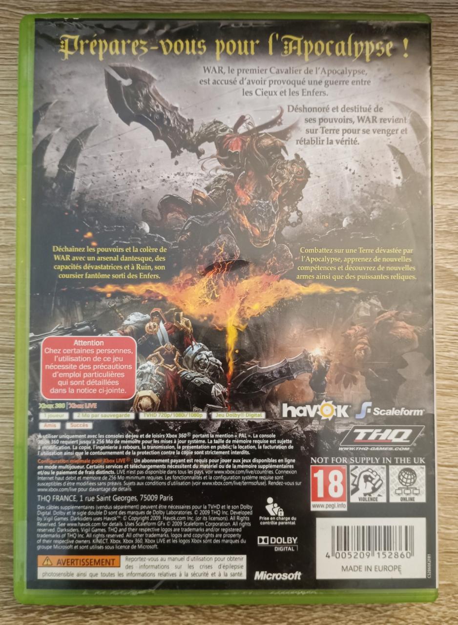 L1 - Darksiders - Wrath Of War - Classics Edition Xbox 360 - EAN : 4005209152860 - ARTICLE OCCASION EN TRES BON ETAT GÉNÉRAL - BOITIER ORIGINAL XBOX 360 - JEUX JOUABLE EN FRANCAIS - LIVRAISON ULTRA RAPIDE EN COLIS SUIVI PROTÈGE - COVER E.U - COMPLET